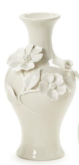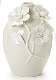 Transform your space into a floral paradise with one of these lovely vases! Crafted from delicate porcelain, each vase features intricate 3-D sculpted flowers that bring a touch of elegance to any room.