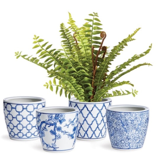 Featuring a chic twist on the classic blue and white design, this small planter brings a playful, yet elegant, vibe to any space. Perfect for a touch of traditional in your home!