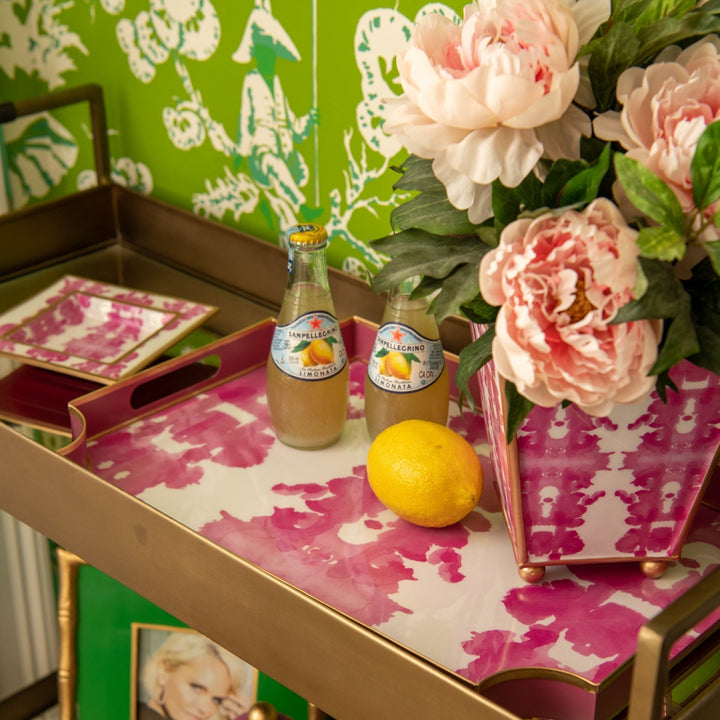 The enameled cachepot makes creating a stunning centerpiece easy. The ink blot artwork is preserved by the enamel finish and features hand-painted gold vertical edges.