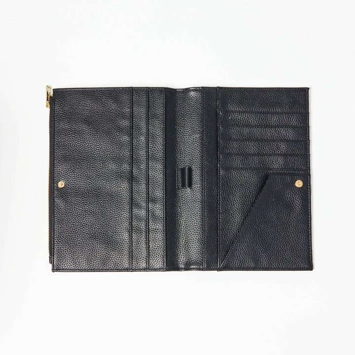 Stay effortlessly organized with the Essential Organizer, designed to keep your essentials neatly arranged and easily accessible. Featuring a sleek quilted exterior and durable gold hardware, this organizer combines style with functionality. The exterior zipper offers additional storage space, while the interior boasts six slip pockets, a dedicated passport pocket, and a snap closure to keep everything in place.
