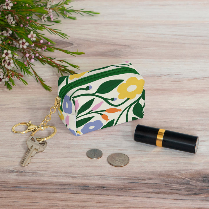 The Floral Bliss Key Chain Pouch is a convenient, lightweight pouch from Studio Oh! that provides a secure and stylish way to carry essentials with your keys! It features a water-resistant, canvas-textured material and lined interiors. This pouch is both durable and easy to clean! Make being on-the-go easy with this Key Chain Pouch!