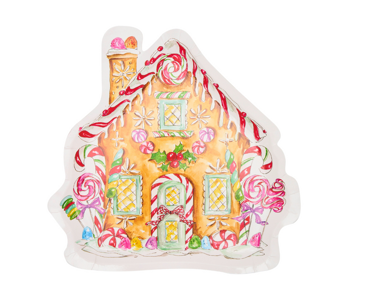 These die-cut salad plates from the Gingerbread collection are shaped like a gingerbread house! The detailed illustration and festive colors perfectly capture the spirit of the season and will be a standout piece at your Christmas celebration. These plates are both durable and disposable, allowing you to skip the dirty dishes, without sacrificing quality and style. Your guests will never believe they’re disposable!