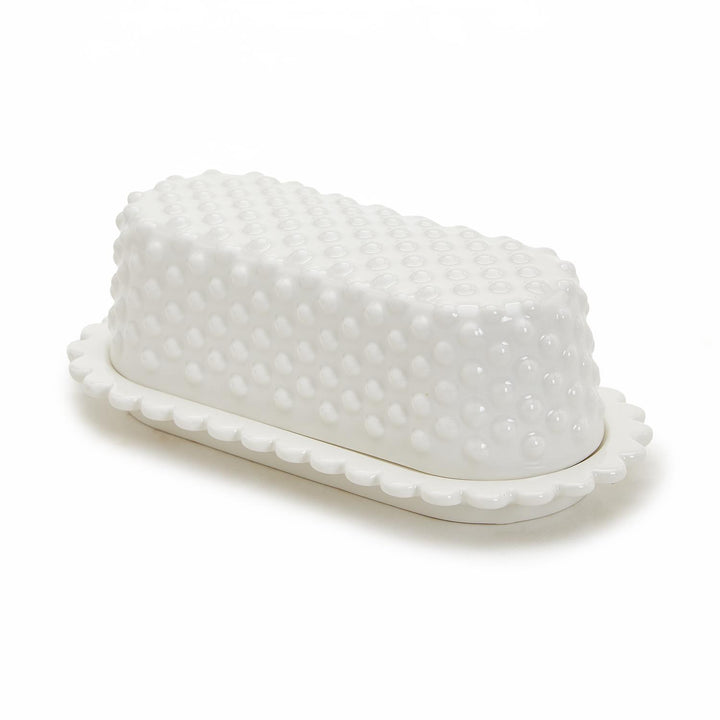 Not your ordinary butter dish. This hobnail textured butter dish will add style to any table setting. Inspired by milk glass this gorgeous butter dish is perfect for all occasions.