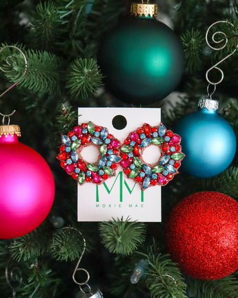 Sparkle through the season with these shimmering Jewel Studs. A beaded wreath design in luxe jewel tones of red, green and blue, they will add a festive touch to any outfit and bring a hint of glamour to any celebration. * Measures 1.5" * Hypoallergenic * Lightweight, Hand Beaded