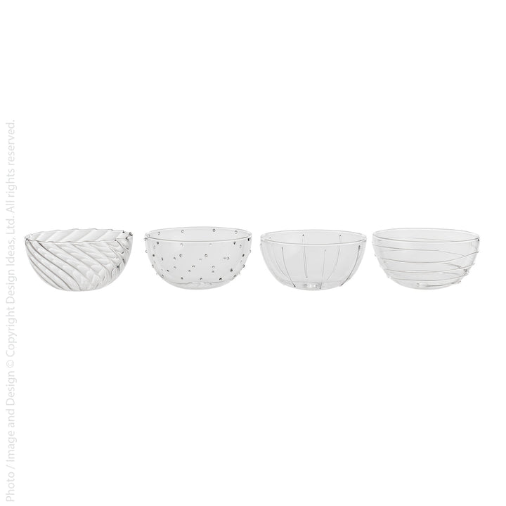 Serve your food in style with the Livenza Bowls! These chic, handmade glass bowls will add a bit of pizzazz to your table and will be sure to impress your guests!