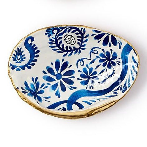 Catch the essence of coastal charm with this adorable trinket dish by Two's Company in a classic clam shell shape. Featuring delicate blue designs that evoke the beauty of the seaside, this whimsical tray is perfect for corralling jewelry, keys, or small treasures. Each piece celebrates the natural elegance of shells with artistic flair, making it as lovely to display as it is functional.