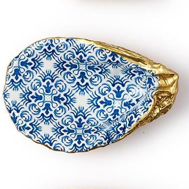 Catch the essence of coastal charm with this adorable trinket dish by Two's Company in a classic oyster shell shape. Featuring delicate blue designs that evoke the beauty of the seaside, this whimsical tray is perfect for corralling jewelry, keys, or small treasures. Each piece celebrates the natural elegance of shells with artistic flair, making it as lovely to display as it is functional.