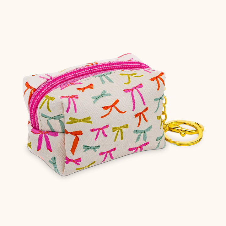 The Put a Bow on It Key Chain Pouch is a convenient, lightweight pouch from Studio Oh! that provides a secure and stylish way to carry essentials with your keys! It features a water-resistant, canvas-textured material and lined interiors. This pouch is both durable and easy to clean! Make being on-the-go easy with this Key Chain Pouch!