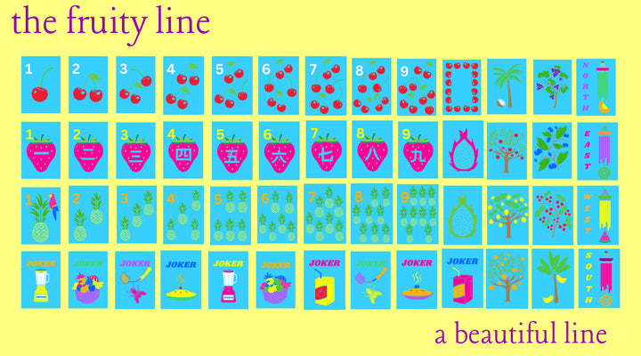 Add a splash of fun to your game nights with The Fruity Line Mahjong Tiles. Featuring sweet cherry dots dots, strawberry cracks, and pineapple bam designs, these tiles bring a tutti-fruity touch to every match. Perfect for game night, they turn classic mahjong into a stylish and spirited experience!