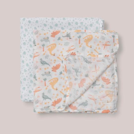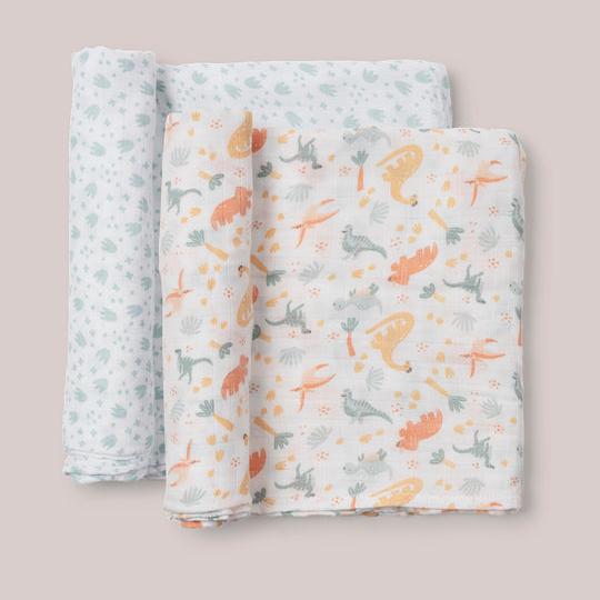 The Swaddle Blanket Set includes two blankets, each with an irresistible, on-trend design. While perfect for swaddling newborns, these blankets can also be used for tummy time, as lightweight stroller covers, and as nursing throws.