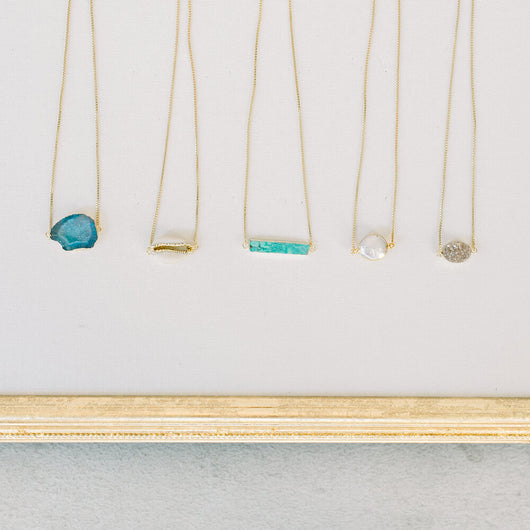 Due to the natural stones used, each necklace is one of a kind. While the style and color are similar to what is pictured, no two designs are alike.
