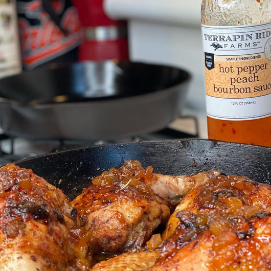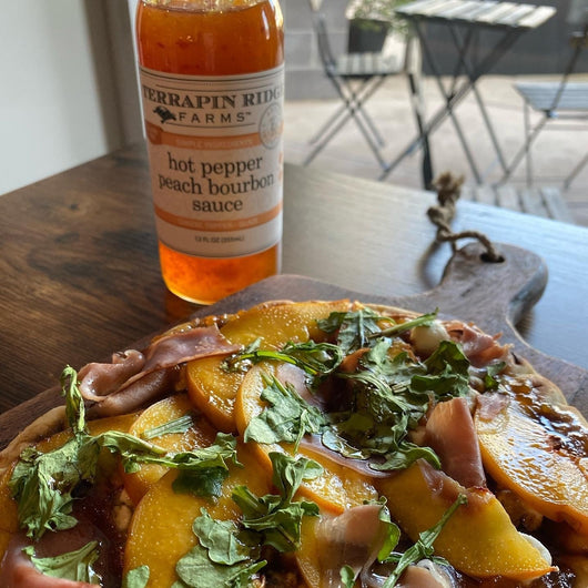 The rich flavor of bourbon adds incredible depth to roasted peaches, while red pepper gives this sauce just the right amount of heat. The result is an incredible glaze for fish, chicken or beef, and a delectable cheese topper!