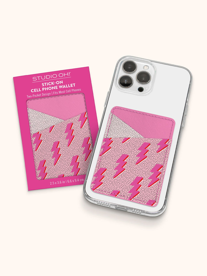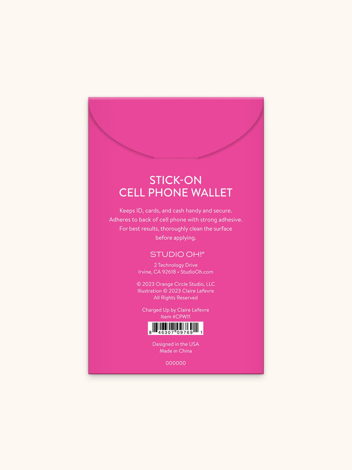 Keep your most valuable personal items in one place with the Charged Up Stick On Cell Phone Wallet from Studio Oh! This wallet is made of a durable, water-resistant material and features an adhesive backing that easily attaches to a phone case. This wallet is both functional and fashionable for all lifestyles!