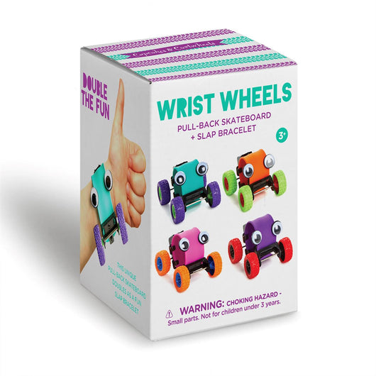 Unleash the fun with this unique pull-back skateboard racer that doubles as a bracelet. Simply pull it back, and watch as it zooms forward with lightning speed! With its playful colors, design and googly eyes that jiggle as it races, this toy is sure to bring endless entertainment to kids of all ages.