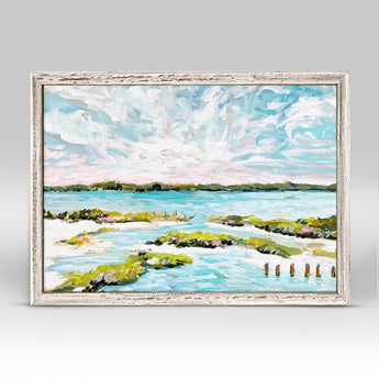 Escape to the lowcountry with this stunning mini framed canvas. Featuring a picturesque marsh sunset, this art print is perfect for adding a touch of charm to your home decor!