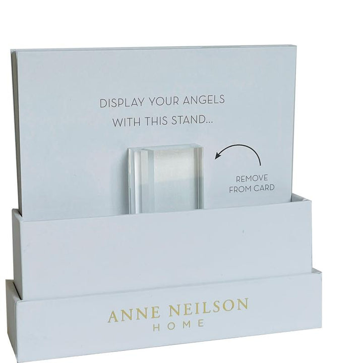 The curated scripture cards feature 26, 4x4 inch double-sided cards with an original Angel on one side, and a carefully chosen scripture verse on the other. Each set comes with one acrylic base for displaying a scripture card.