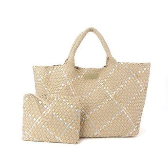 A fresh take on everyday style—lightweight, versatile, and ready for anything! This large tote is crafted from a handwoven neoprene blend for a modern, effortless look. Its washable and durable design makes it a perfect on the go tote, from the gym to your favorite destination spot!