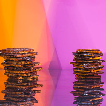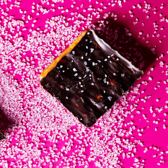 Salty, sweet, chocolately and crunchy. The combination never fails. Made with a crispy combination of a cracker, salted handmade toffee, semi-sweet chocolate and topped with sea salt, the combination results in one of the best tastes known to mankind!