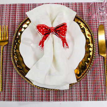 Bring a burst of holiday cheer to your table with the Red Bow Napkin Ring. Its bright, festive bow adds a playful and charming accent to your napkins, making every meal feel merry and bright. Perfect for spreading joy at any holiday gathering!