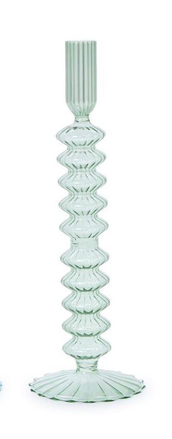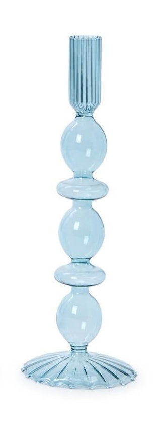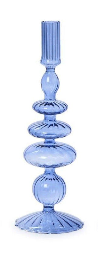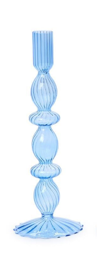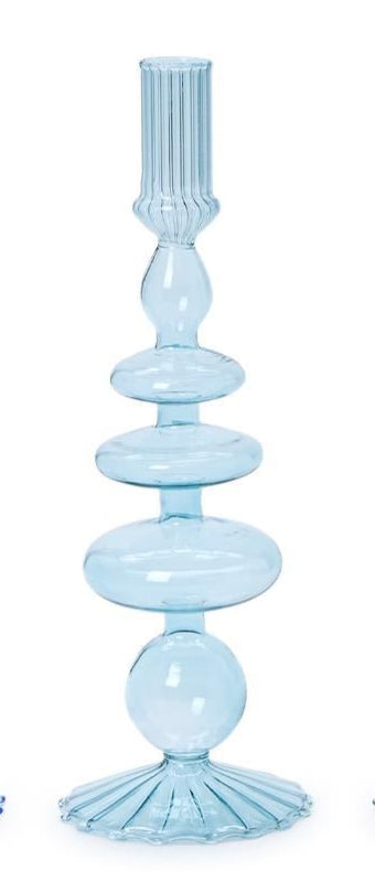 Elevate your decor with these Blue Hand-Blown Glass Tapered Candlestick Candleholders. Hand-crafted with care, each piece showcases a unique blend of blue hues, adding a touch of elegance to any space. These candleholders make the perfect centerpiece for your dining table or mantel. You can pair them together or scatter them around the room for a stunning effect!