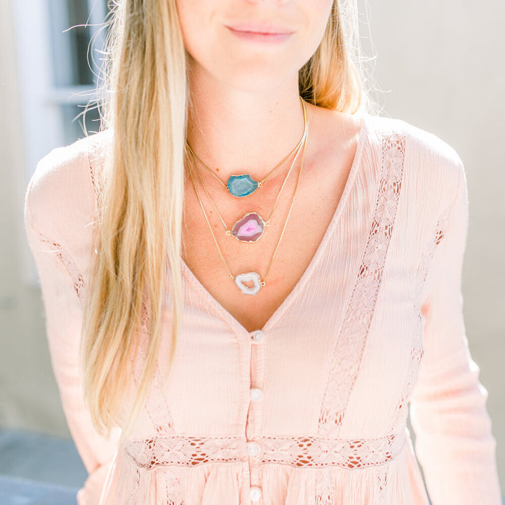 Due to the natural stones used, each necklace is one of a kind. While the style and color are similar to what is pictured, no two designs are alike.