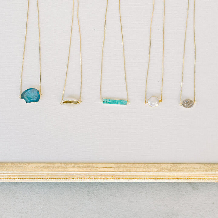 Due to the natural stones used, each necklace is one of a kind. While the style and color are similar to what is pictured, no two designs are alike.