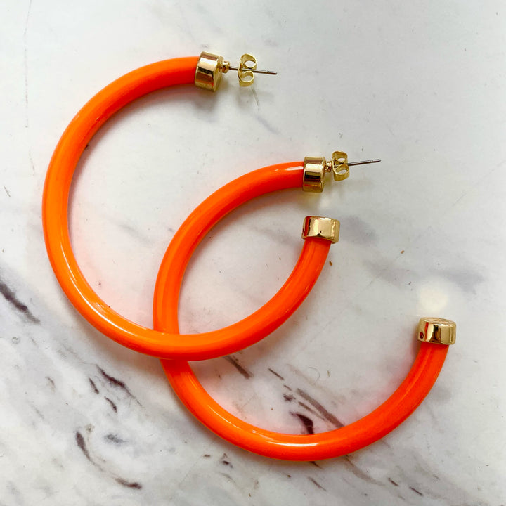 A trendy hoop that you can wear with endless looks! These acrylic hoops feature small gold detailing with a post backing. A lightweight earring that won't get uncomfortable as the day goes on! Style these for game day, dinner with friends, or date night!