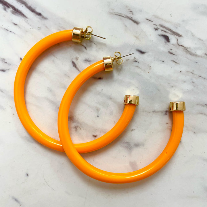 A trendy hoop that you can wear with endless looks! These acrylic hoops feature small gold detailing with a post backing. A lightweight earring that won't get uncomfortable as the day goes on! Style these for game day, dinner with friends, or date night!