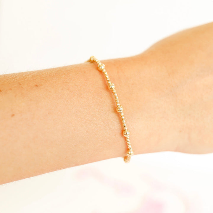 The June is a mix of 2mm & 4mm 14 K gold filled beads! This water proof bracelets is the perfect dainty addition to any stack