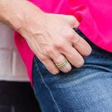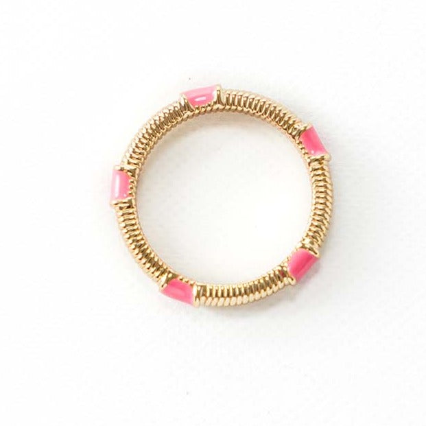 18k gold plated ribbed and enamel pattern ring- nickel and lead-free- hypoallergenic