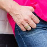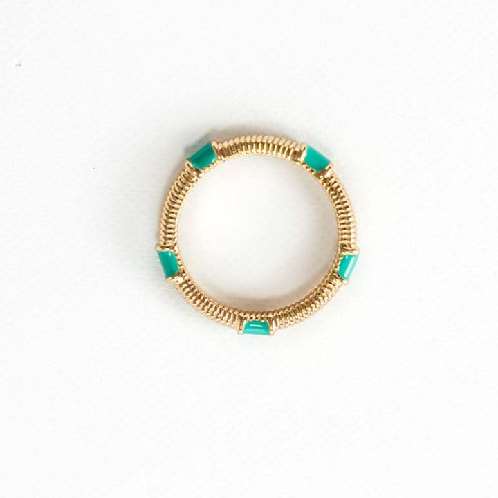 18k gold plated ribbed and enamel pattern ring- nickel and lead-free- hypoallergenic