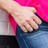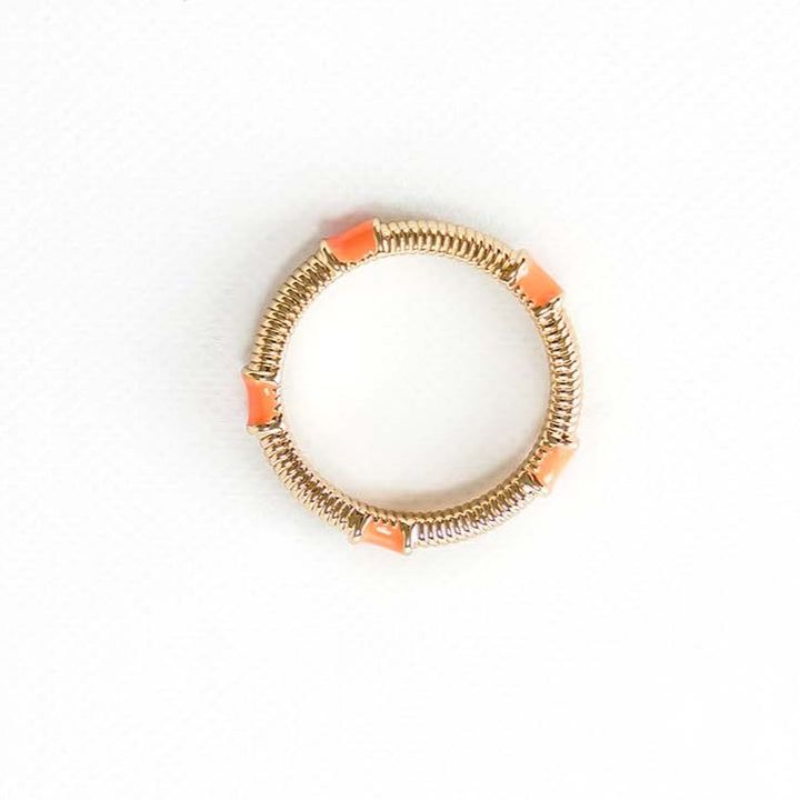 18k gold plated ribbed and enamel pattern ring- nickel and lead-free- hypoallergenic