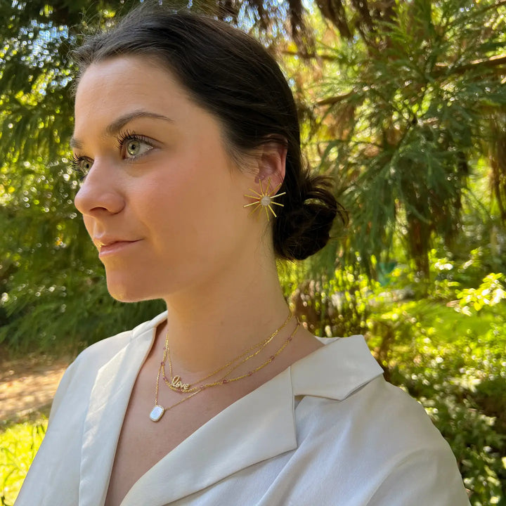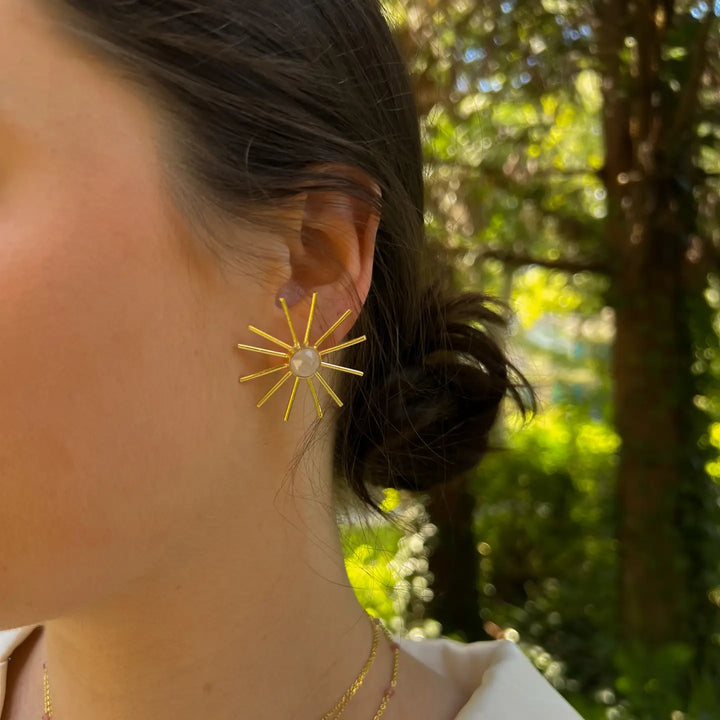 The sun-inspired motif adds a touch of celestial elegance, making these studs a perfect statement piece for any occasion. Their versatile design ensures they transition seamlessly from day to night, adding a sophisticated sparkle to your ensemble!