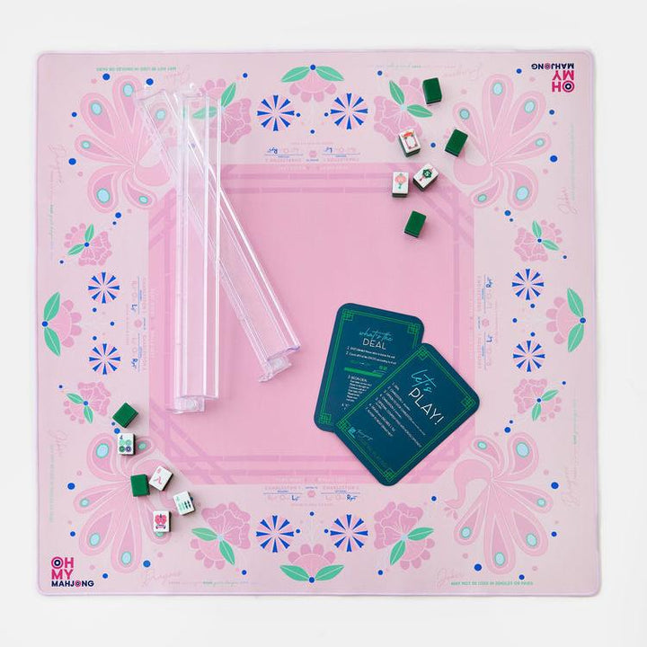 The Birdie Mahjong mat offers clear explanations directly on the mat, including the Charleston, suit and dragon pairings, wall direction, and the "no jokers in a pair" rule.