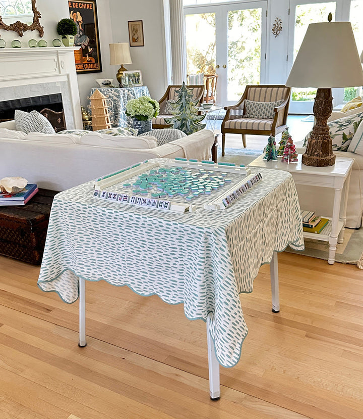 Add a touch of whimsy to your breakfast nook or game night with this beautiful scalloped tablecloth!