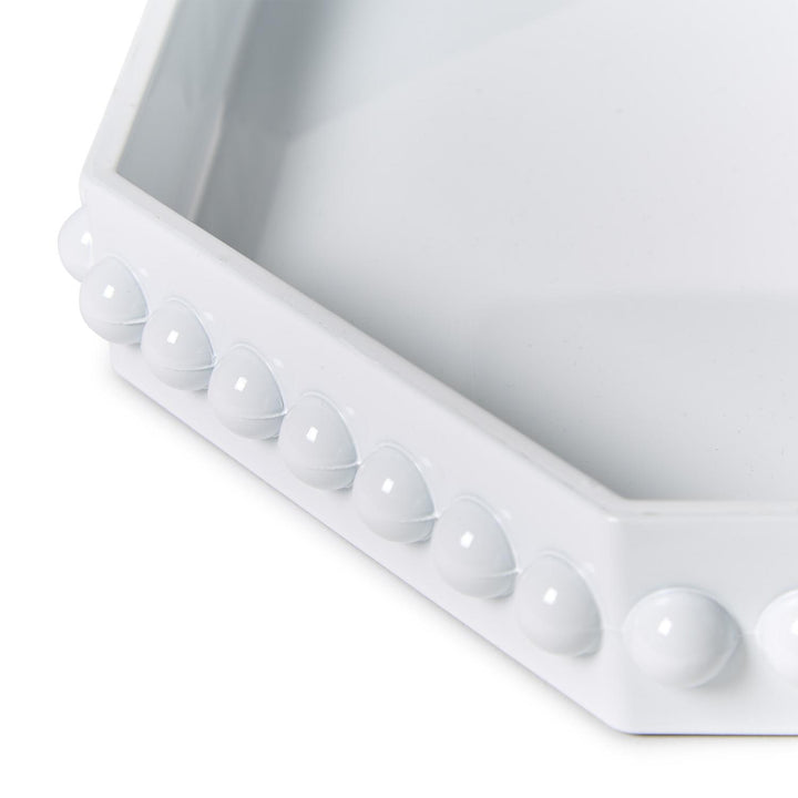 Crafted from high-quality plastic, this tray is not just a stunning accent piece but also a functional addition to your decor. The intricate geometric design adds a touch of modern flair while the color options allow for versatile styling in any room. Whether used to display trinkets on a coffee table or serve drinks to guests, this tray is sure to impress.