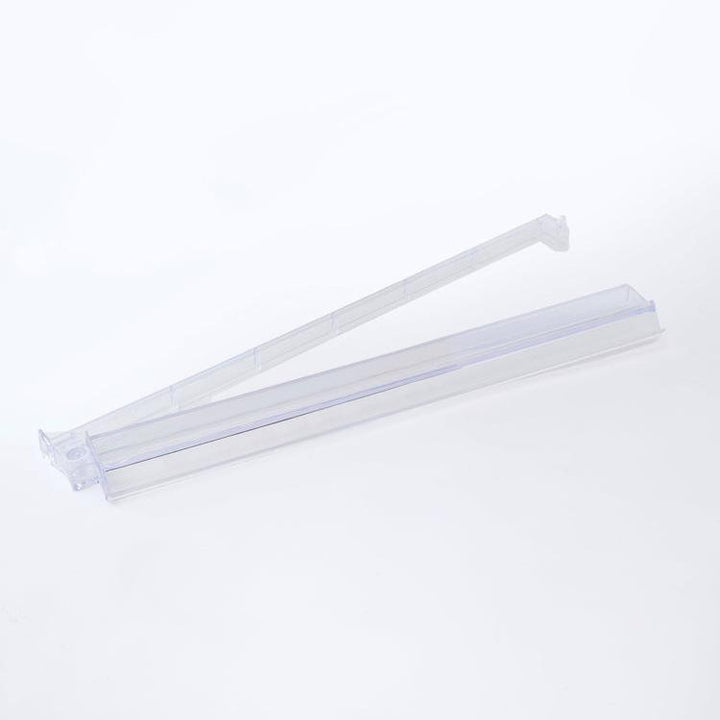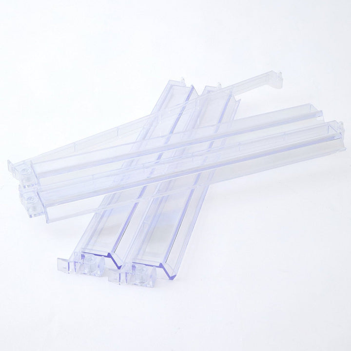 Each set includes four clear acrylic racks with attached pushers, with a stack length of 18.5 inches.