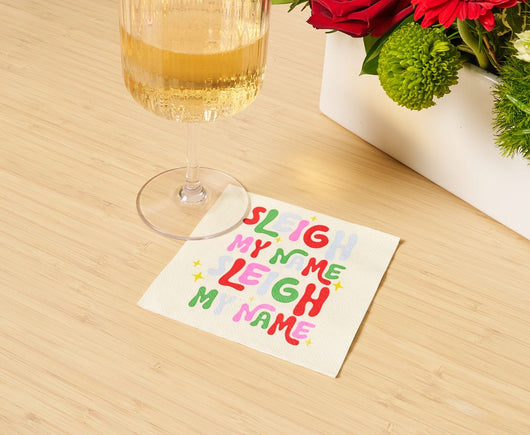 Bring festive fun to your holiday happy hour with these fun cocktail napkins! Whether used to hold appetizers or placed under your beverage at the dinner table, these napkins bring both practicality and elegance to your Christmas celebrations.