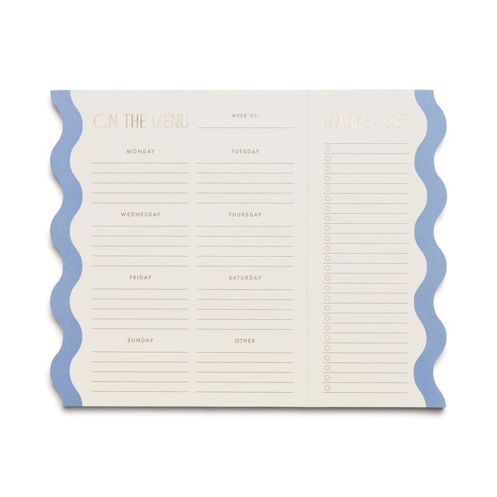 This mod notepad puts the “fun" in functional, with fresh colors, scalloped borders, and designated sections for weekly “on the menu” and “market list” items!