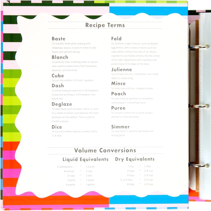 Keep your recipes and kitchen secrets neatly organized with this vibrant recipe binder! Its cheerful striped design adds a splash of fun to your countertop, while sturdy pages keep all your cooking notes safe and easy to find.