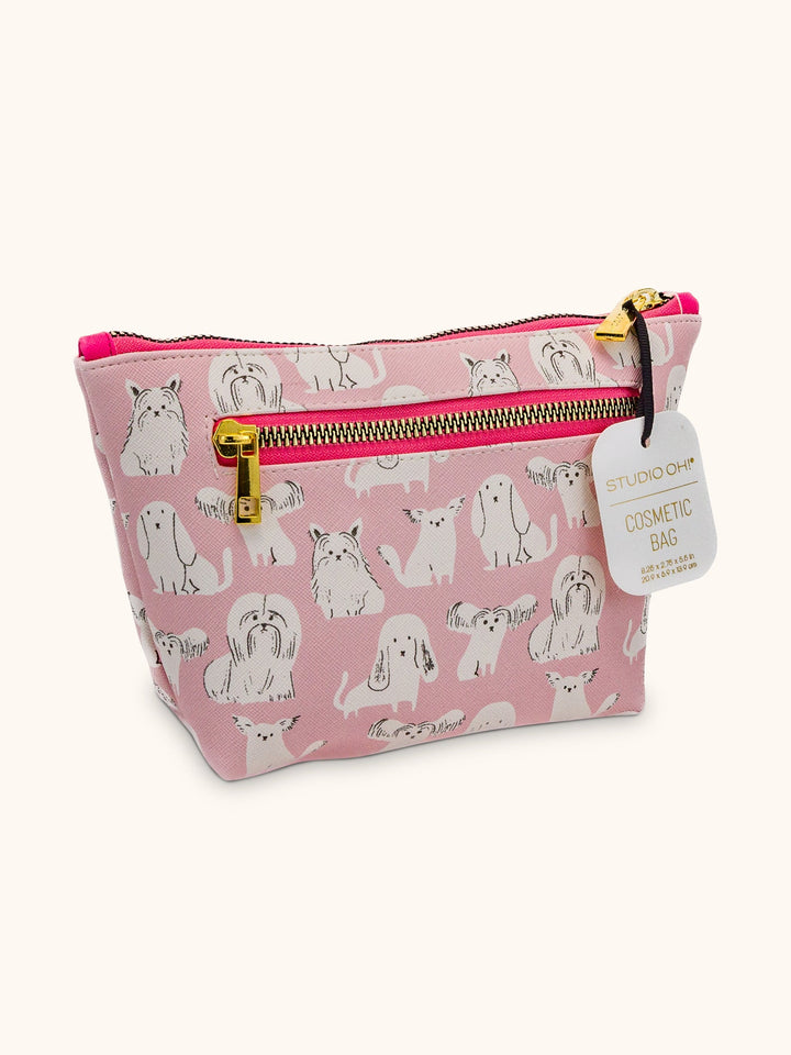 The Watchdogs Cosmetic Pouch from Studio Oh! is the perfect size to pack must-haves for touch-ups on the go! Designed for function and beauty, this portable bag is made of water-resistant PU material, fully lined, and adorned with full-color art and a metal zipper. Stay true to style while keeping your cosmetics safe and secure!