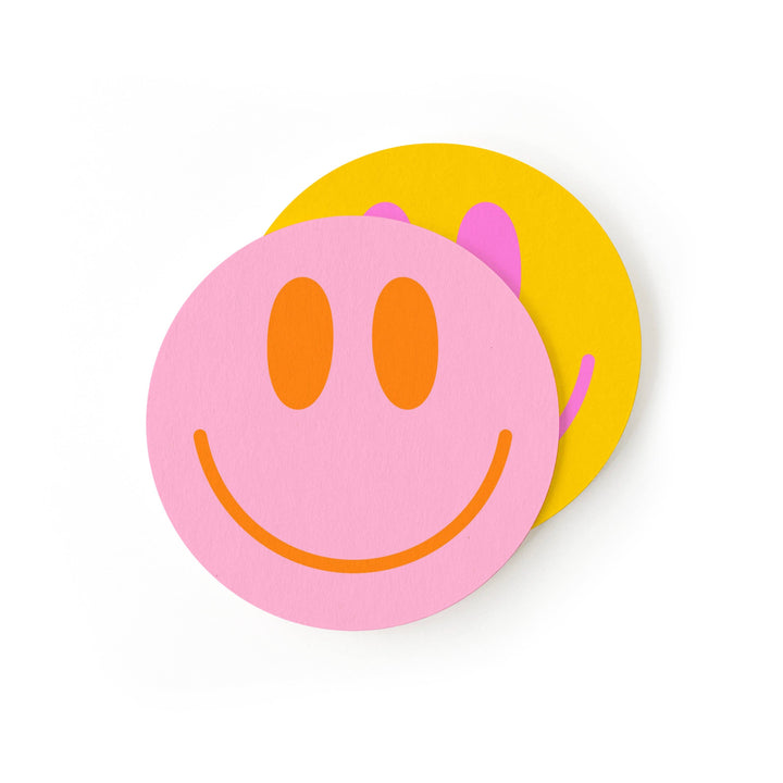 Spruce up your drinks with these Smiley Face Coasters! Protect your surfaces in a playful way with these durable coasters, featuring cheerful smiley faces. Cheers to a good time!