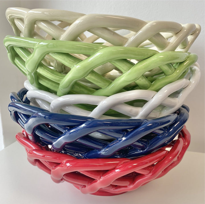These cute and versatile bread baskets from Casafina need to be part of your table! Why? First, they come in a variety of stylish colors and are expertly made by hand. Second, they are made of oven-proof ceramic and can be heated in the oven to keep your rolls or biscuits piping hot. Simply heat the basket in a 200 degree oven for 15 minutes, line the basket with a nice towel or cloth and add your hot rolls! Third, they can be used for centerpieces and as bowls for fruit!