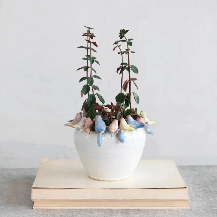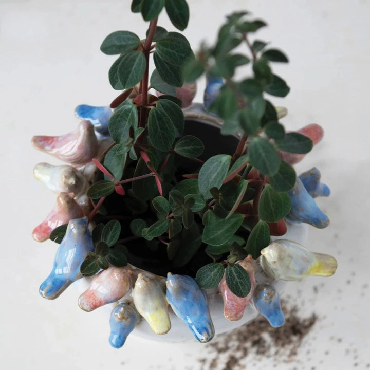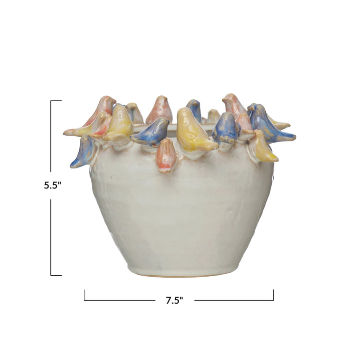 Bring some whimsy to your home with this beautiful planter! The colorful birds around the rim are as pretty as the plant it will hold.