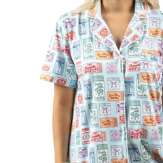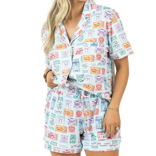 This matchbook-inspired PJ Pant Set is a total vibe! The quirky, cute print gives these women’s pajamas major personality, while the soft fabric and relaxed fit keep it cozy. The button-front top, elastic waistband, and must-have pockets make it functional, too - perfect for girls’ nights, gift-giving, or striking a pose on the ‘gram!