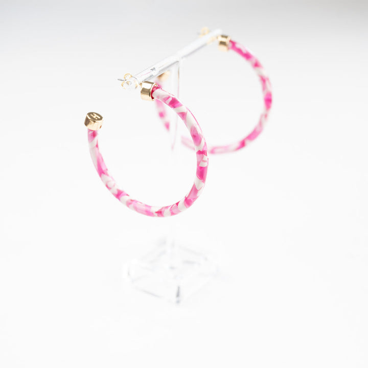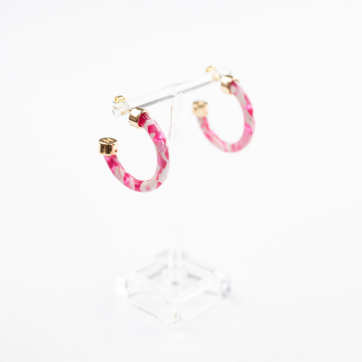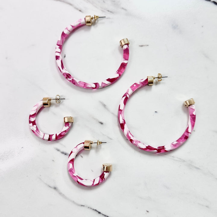 A trendy hoop that you can wear with endless looks! These acrylic hoops feature small gold detailing with a post backing. A lightweight earring that won't get uncomfortable as the day goes on! Style these for game day, dinner with friends, or date night!