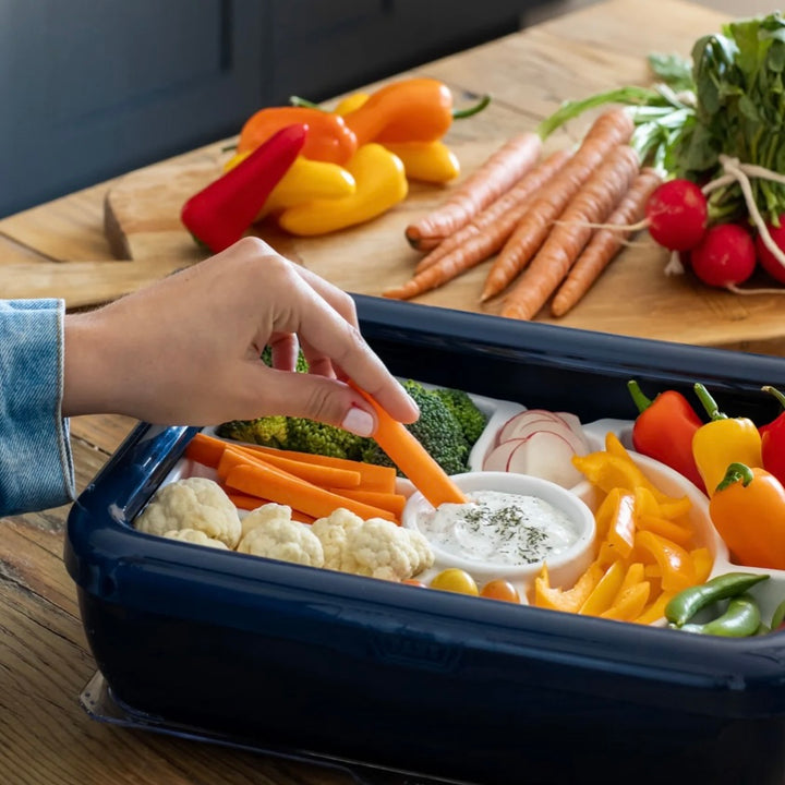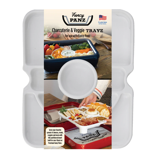 Easy to use: Simply open your Fancy Panz and instead of a foil pan, insert the Charcuterie Tray, it's that easy! A flexible cold pack (not included) can be used underneath your Trayz to be sure your food stays fresh and cold!