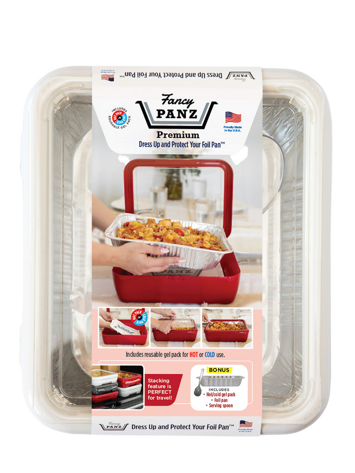 Fancy Panz Premium is the perfect solution for transforming those flimsy, unattractive foil pans into stylish and functional serving dishes! Offering the perfect blend of convenience and presentation, it's ideal for potlucks, parties, tailgates, BBQs, picnics and more!