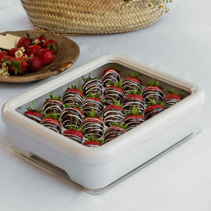 Designed for versatility, the ribbed pan bottom improves air flow to help maintain your food's temperature, whether hot or cold. When it's time to serve, just remove the clear cover and place it underneath the Fancy Panz to use as a trivet.